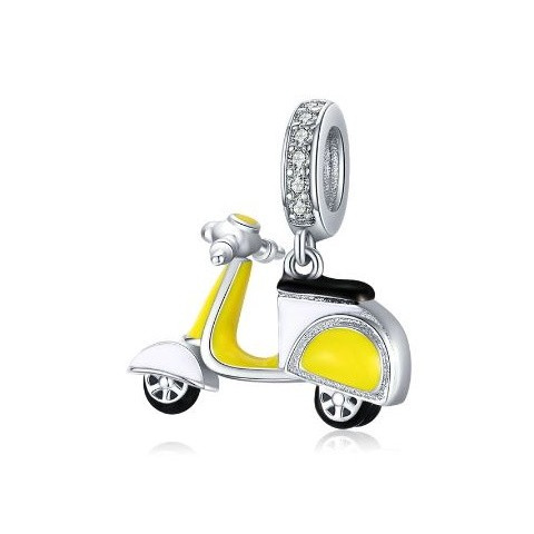 Fedezd fel a stílusos elegancia világát ezzel a különleges ezüst motor charm-mal! A 925 sterling ezüstből készült kis remekmű tökéletes választás, ha egyedi kiegészítőt keresel nyakláncodhoz vagy karkötődhöz. A charm élénkségét a sárga cirkóniumkristály a