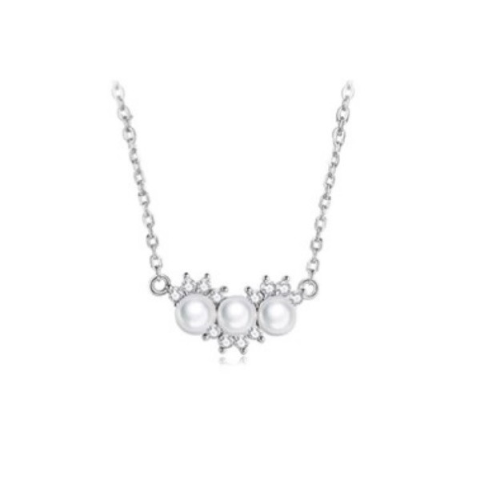 Fedezd fel a kifinomult eleganciát ezzel a lenyűgöző ezüst nyaklánccal, amelyet három gyöngy és csillogó cirkóniumkristályokkal díszített medál tesz különlegessé. A nyaklánc 925 sterling ezüstből készült, amely biztosítja a minőséget és a tartósságot. A m