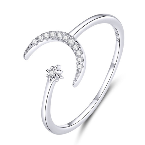 Ez a lenyűgöző ezüstgyűrű, a Hold és csillag motívumával, minden pillanatot varázslatossá tesz. A 925 sterling ezüst finomsága és a platinabevonat eleganciája páratlan csillogást biztosít. A gyűrű finom vonalai és légies megjelenése tökéletesen kiegészíti