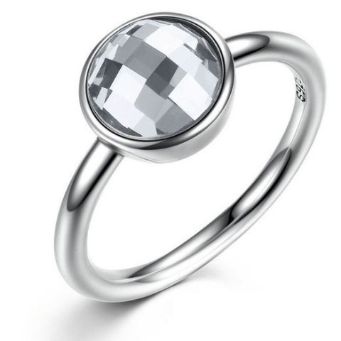 1 kép Ékszerkirály Kerek köves ezüst gyűrű, Fehér, 6 (Pandora stílus)