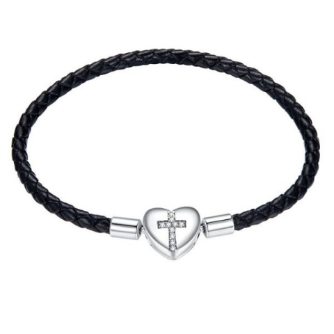 Teljes Ékszerkirály Női karkötő ezüst/bőr, szív kapoccsal, 17 cm termékleírás