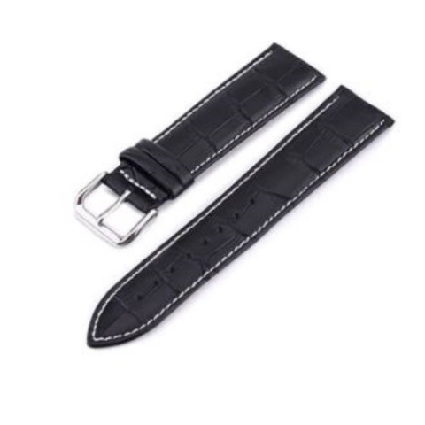 Bőrből készült, állatmintás óraszíj hagyományos tűs csattal.