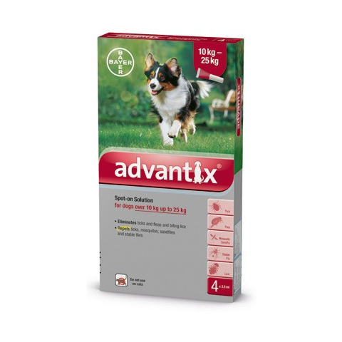 Az Advantix Spot On oldat egy repellens hatású Spot On kutyák számára kullancsok, bolhák, szúnyogok, lepkeszúnyogok, legyek és tetvek ellen. Javallat: Bolhásság (Ctenocephalides felis, Ctenocephalides canis) kezelésére és megelőzésére. A kutyán élőskö