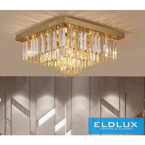 1 kép ELDLUX Kristály üveg mennyezeti lámpa E14×13 D600x600x350mm Arany