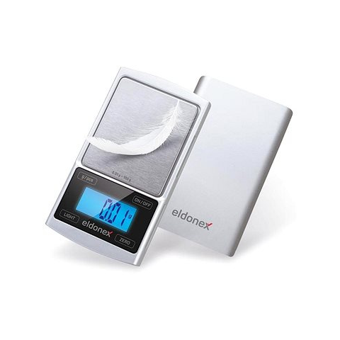 Konyhai mérleg - digitális, zsebméretű, kávéhoz, klasszikus dizájn, terhelhetőség max. 0,1 kg, mérési pontosság 0,01 g, mértékegység gramm, automatikus kikapcsolás, érintéses vezérlés és háttérvilágítású kijelző, anyaga műanyag és fém, ezüst kivitel, mérete 1,7 × 6,9 × 12 cm (Ma×Sz×Mé), 2 CR2032 elem, elemek a csomag része Eldonex DiamondPro konyhai mérleg 0,01 grammmos pontossággalA megbízható Eldonex DiamondPro konyhai mérleg háztartási és profess