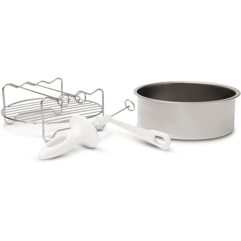 Konyhai kiegészítők Air Fryer sütőhöz Kiváló minőségű, 6 részes készlet forrólevegős sütéshez, amellyel nem csak az egészséges főzéssel kapcsolatos lehetőségeket szélesítheti, hanem fokozhatja a főzés élményét is. Bővítse kulináris élményeit A sütőformát, rácsot, nyársakat és spirálszeletelőt kínáló, rendkívül hasznos, forrólevegős sütésre tervezett készlet praktikus tartozékokkal segíti az ételek sütését, grillezését, pirítását, ba
