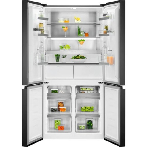 Side by side hűtő - négyajtós, energiaosztály E, hűtőtér tárolókapacitása 343 l, fagyasztótér tárolókapacitása 343 l, opcionálisan elhelyezhető pántok, 2 polc, 6 fagyasztórekesz, kijelző, LED világítás és nyaralási mód, mérete 190 × 90,9 × 69 cm (Ma×Sz×Mé) A 900 MultiSwitch No Frost szabadon álló Side by side négyajtós hűtőszekrény 343 literes és 179 literes fagyasztótérrel rendelkezik, 6 rekesszel. A hűtőszekrény opcionális zsanéros elhelyezéssel