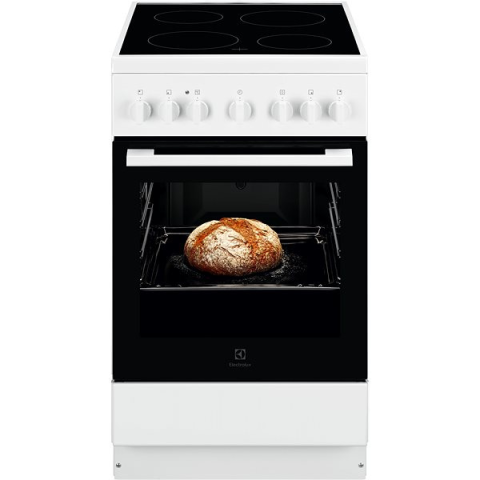 Tűzhely - elektromos tűzhely, kerámialapos főzőlap, A energiaosztály, mérete 85,8 × 50 × 60 cm (Ma×Sz×Mé), 4 főzőzóna, FŐZŐLAP jellemzők: vezérlés forgógombokkal, SÜTŐ jellemzők: állítható lábak, gyors előmelegítés, grillezés és alsó sütés, fehér kivitel Eljött az ideje a konyha felújításának vagy a régi tűzhely cseréjének? A kiváló ELECTROLUX elektromos tűzhely kerámia főzőlappal a mindennapos főzés közben meg fog felelni az igényeidnek. T