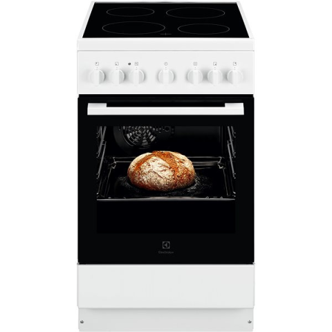 Tűzhely - elektromos tűzhely, kerámialapos főzőlap, A energiaosztály, mérete 85,8 × 50 × 60 cm (Ma×Sz×Mé), 4 főzőzóna, FŐZŐLAP jellemzők: vezérlés forgógombokkal, SÜTŐ jellemzők: állítható lábak és egyenletes sütés több szinten, gyors előmelegítés, grillezés és alsó sütés, fehér kivitel Új tűzhelyt akarsz beszerezni? A nagyszerű ELECTROLUX elektromos tűzhely kerámia főzőlappal megfelel neked a mindennapos főzés közben. Teljesítménye 9,045 kW.