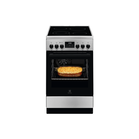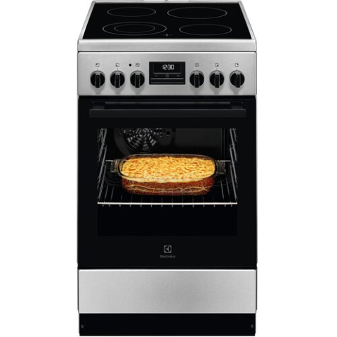 Design:Built-in display: YesProduct type: Freestanding cookerOn/off light: YesProduct colour: SteelControl position: FrontControl type: Buttons, KnobPower:Energy efficiency class: AEnergy consumption (conventional): 0.75 kWhConnected load (electric): 7945.5 WWeight & dimensions:Width: 500 mmWeight: 42 kgDepth: 600 mmOven:Bottom heating: YesGrill with fan: YesGrill: YesTop heating: YesOven power source: ElectricNumber of ovens: 1Convection cooking: YesViewing window: YesFan grill function: YesOve
