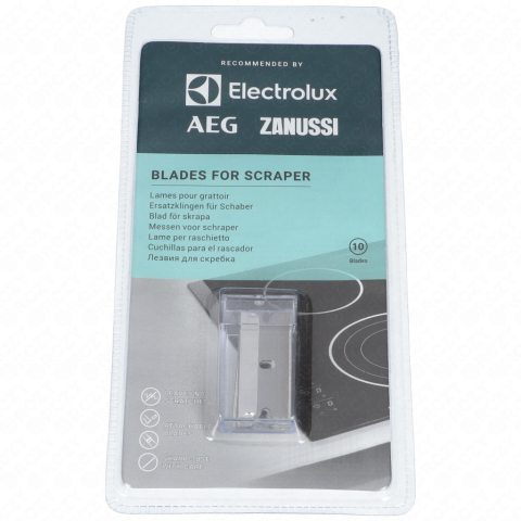 Tartalék pengék az Electrolux E6HUB102 számára, a kerámia főzőlapok tisztításához. A csomag tíz darab cserepengét tartalmaz, amely gyorsan, de kíméletesen távolítja el az odaégett ételt és a piszkot a főzőlapról anélkül, hogy összekarcolná azt.