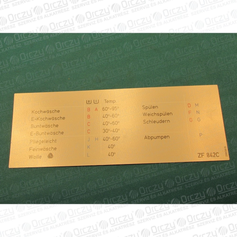Electrolux Programtábla (eredeti) ELECTROLUX ZF 842C mosógép beépíthető gépek kiegészítői árgrafikon