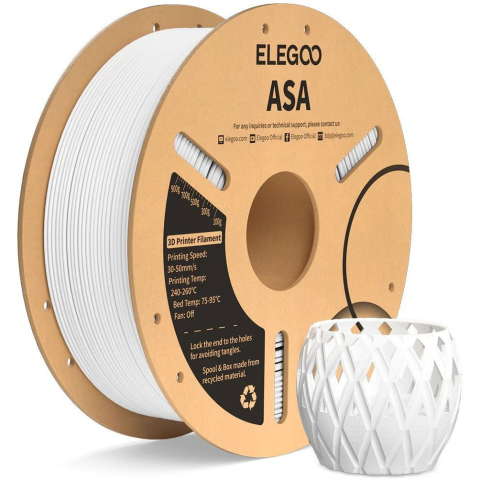 Elegoo ASA - 1,75mm, 1kg, Cardboard Spool, White (ELEEG240454)