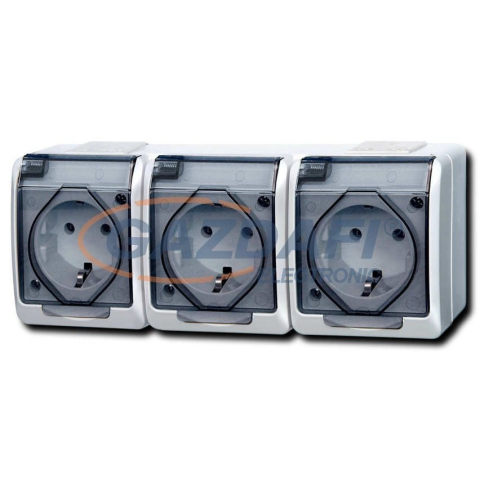 1 kép ELEKTRO-PLAST 0326-01 "Hermes" hármas dugalj, átlátszó fedéllel, IP44
