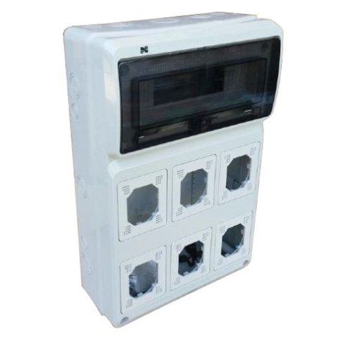 Ipari doboz, 13 modul, 6 furattal.ELEKTRO-PLAST EP-S0857 általános leírása:A villamossági elosztószekrény egy olyan fém vagy műanyag doboz, amelyben az épület vagy létesítmény elektromos rendszerének főbb komponensei találhatók. Ezek a komponensek lehetne