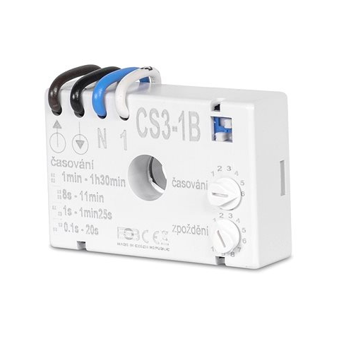 Időkapcsoló - vezérlőelem/kapcsoló alatti telepítés, bekötés 230 V, 5-150 W, alkalmas ventilátorokhoz, Csehországban gyártva Az Elektrobock CS3-1B időzítő lehetővé teszi a ventilátor kapcsolásának késleltetési beállításokkal történő vezérlését. A be- és kikapcsolás a világítástól függ. A ventilátor legfeljebb a vilá