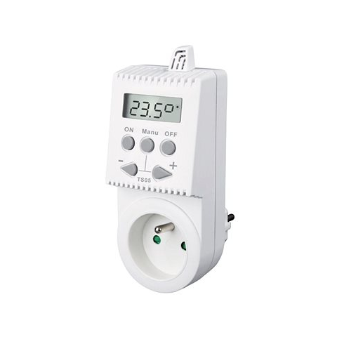 Okos konnektor - önállóan működő, zárt rendszer, kijelző, max. áram 16 A, fehér kivitel, IP20 védelem Az Electrobock TS05 thermo kapcsoló dugalj fűtőtestekkel, sugárzó panelekkel és más típusú elektromos fűtőberendezésekkel használható. A beállított hőmérséklet elérésekor mindig bekapcsol. A gombok se