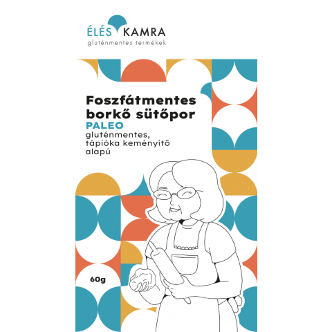 Éléskamra foszfátmentes borkő paleo sütőpor tápióka keményítő alapú 60 g Foszfátmentes borkő sütőpor. Nettó tömeg: 60g (+/-2g). Gluténmentes. Felhasználási javaslat: a csomagoláson lévő muffin a Csodacsokis bögrés sütiből készült a rajta lévő recept s