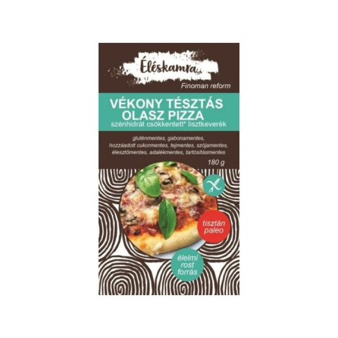 Éléskamra vékonytésztás olasz pizza lisztkeverék 180 g Paleolit Éléskamra Vékonytésztás Olasz pizza lisztkeverék 180g Hagyományos pizza nem hagyományos alapanyagokból. Igazi pizza élmény a saját sütőnkből, búzaliszt nélkül, mégis teljes értékű kulinár