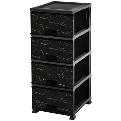 Elif Plastik Komód 4 fiókos dekor mintával – többféle színben Fekete bútor termékleírás