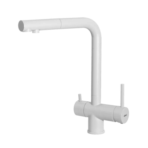 ELLECI Tourmaline Plus Fehér 3-utas Konyhai Csaptelep Kihúzható Fejjel 🚰 Az ELLECI Tourmaline Plus csaptelep a modern elegancia és a praktikum tökéletes ötvözete. A háromutas kialakítás lehetővé teszi a vezetékes és szűrt víz használatát egyetlen csa...