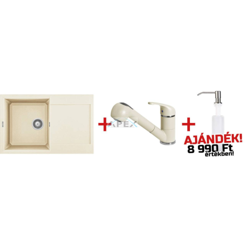 ELLECI - EASY5 szett Elleci akciós szett ajánlat: mosogatótálca+csaptelep+mosogatószer-adagoló A SZETT TARTALMA Elleci Easy 300 G62 Bianco Antico mosogatótálca 1 medencés mosogatótálca csepegtetővel, munkalapra szerelhető, anyaga: granitek, színe: G