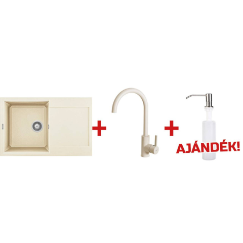 ELLECI - EASY6 szett Elleci akciós szett ajánlat: mosogatótálca+csaptelep+mosogatószer-adagoló. A SZETT TARTALMA Elleci Easy 300 G62 Bianco Antico mosogatótálca 1 medencés mosogatótálca csepegtetővel, munkalapra szerelhető, anyaga: granitek, színe: