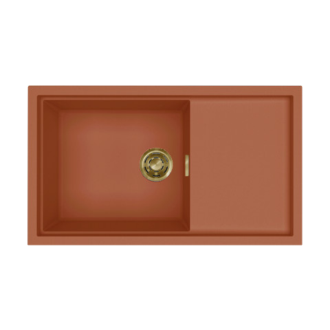 ELLECI - Mosogatótálca Sintesi 410 K83 Cavern Clay arany tartozékokkal Az intuíció a zsenialitás villanása. A Sintesi racionális esztétikája intelligens és rendkívül funkcionális módon hozza ki a legtöbbet az extra nagy medencéből. A sík felület megnöv