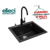 ELLECI Quadra 105 Nero Granitek Mosogatótálca Szett Csapteleppel és Adagolóval 🖤 Ez a komplett szett tartalmaz mindent, amire szükséged lehet egy modern és stílusos konyhához. A Granitek anyagból készült mosogatótálca, a hozzáillő csaptelep és a prak...