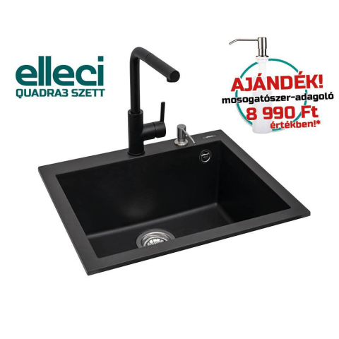 ELLECI Quadra 105 Granitek Mosogatótálca Szett: Elegancia és funkcionalitás a konyhádba! 🖤 Ez az akciós szett mindent tartalmaz, amire szükséged lehet egy modern és praktikus konyhához. A szett tartalma:   Elleci Quadra 105 G40 Nero mosogatótálca   E...