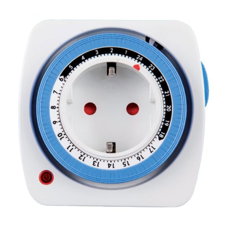 Kis méretű analóg kapcsolóóra • Tápfeszültség: 230 V; 50Hz • Min. beállítási idő: 15 perc • Max. beállítási idő: 24 óra • aktív terhelés: 16A-ig • IP20 • Méret (mm): 82x84x56