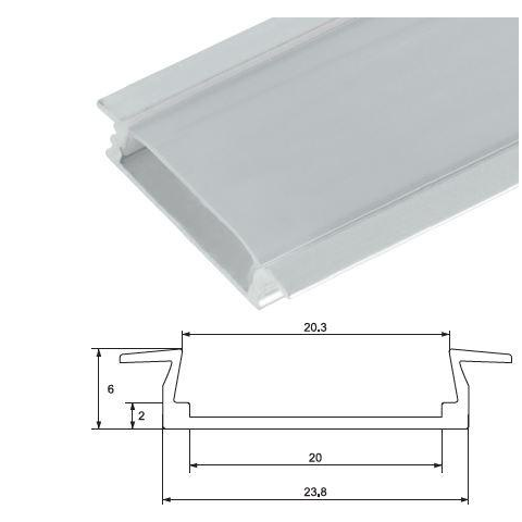 Az ár 1 méterenként értendő! Alu profil külső méret: 23,8 x 6 mm Belső méret: 20mm x 5mm Megfelelő LED szalagok: 2x8 és 2x10 mm széles Alu profil felülete: eloxált felületvédelem Takaró profil színe: matt Hossza: 1m