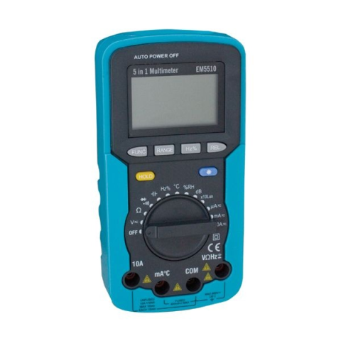 Digitális multiméter ЕМ5510 Digitális készülék nedvesség, megvilágítottság, hőmérséklet és minden villamos paraméter mérésére. Méréstartomány automatikus beállítása. Manuális paraméter kiválasztás. LCD kijelzője 3 ¾ méretű számjegyekkel jelzi a mért ér