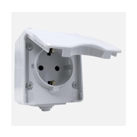IP65-ös védelemmel rendelkező csapfedeles dugalj. Feszültség: 230V Max áramerősség: 16A Védelem: IP65 Szerelési mód: falon kívül Szín: szürke
