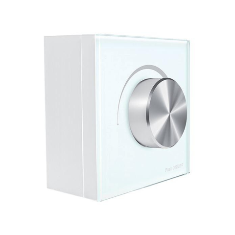 Forgó gombos fényerőszabályzó háttérvilágítással. Távirányítóval, mobil alkalmazással android vagy IOS eszközről vezérelhető fényerőszabályzó kapcsoló. 2,4 GHz-es vezeték nélküli technológia, hatótávolság 30 m-ig. Egy RF fényerőszabályzót legfeljebb 10