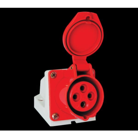 63A 3P+PE IP44 Speciálisan ipari épületekben vagy nyílt munkaterületen történő alkalmazásra kifejlesztett csatlakozó aljzatok és dugók. Anyaguk speciális, jó minőségű műanyag, amely a napfény okozta öregedést csökkentő és a mechanikai szilárdságot növelő