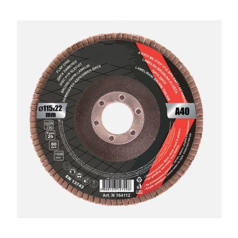 Lamellás csiszolókorong, 125 mm, fém, kő és fa csiszolásához. Korongátmérő: Ø 125×22.2×1.2 mm Szemcseméret: A-80 Lamellás csiszolókorong 80-as, fém, fa és kő D=125mm – Minőségi választás, praktikus felhasználás Megbízható, tartós, könnyen használható t