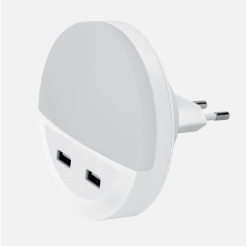 Technikai adatok: ▪ Teljesítmény: 0,5 W ▪ Színhőmérséklet: 4000K ▪ Energiaosztály: A ▪ Mód: ON / OF & auto ▪ Érzékelők: PIR érzékelő - ha a fényerősség kevesebb mint 10 lx ▪ Szín: fehér ▪ Méret: Magassága: 60mm Átmérő: 61mm Jellemzők: ▪ Kettős USB töltő