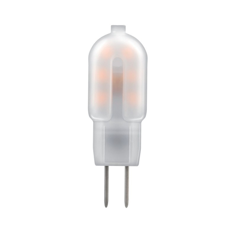 Névleges feszültség 12V Erő 1,2W foglalat G4 Fényáram 100lm Fényhatásfok 83lm/W Színhőmérséklet 3000 Fénysugár szög 300° Kedvezménycsoport C A fényforrás színe Meleg fehér Átlagos élettartam 30000h Dimmelhető Nem Méretek (mm) L:38