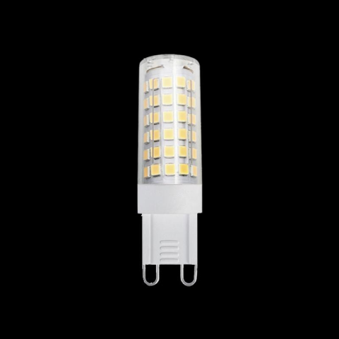 G9 foglalatú 7W teljesítményű LED lámpa. Feszültség: 230V Teljesítmény: 7W Súlyozott energiafogyasztás: 7 kWh/1000h Fényerőszabályzás: nem Fényáram: 630 lumen Színhőmérséklet: hideg fehér 6400K Vilagítási szög: 300 fok Méret: 65x19mm Várható élettartam: 3