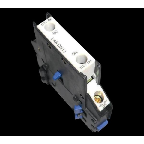LT03-DN11 típusú kiegészítő (segéd) érintkező Szükség esetén kiegészítő érintkezők rendelhetők, melyeket oldal felőli szereléssel lehet rögzíteni az LT1D szériájú kontaktorok vasmagjának mozgatható részére. Kapható változatok kettő darab - NO és NC - kie