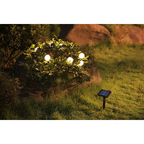 Teljesítmény: 0,6W/db (8db - 4,8W) Színhőmérséklet: 2000K Fényforrás: LED Fényáram: 18 lumen Akkumulátor: 2x Ni-Mh/900mAh IP védelem: IP68 Kábel hossza: 3m Lámpa anyaga: Műanyag Dimmelhető: nem Töltési idő: 8h Leszúrható napelemmel működik.