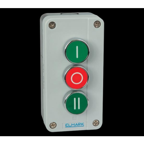 1 kép Elmark Nyomógomb tokozott IP44 zöld, piros, zöld