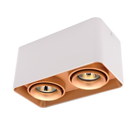 Feszültség: 230V Foglalat: 2xGU10 Védettség: IP20 Anyaga: Alumínium Szín: fehér/arany Méret (mm): L:205/W:205/H:100