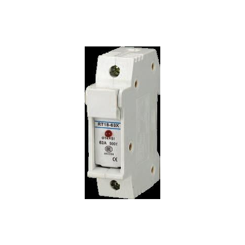 AC,DC rövidzárlat védelem. DIN sinre szerelhető 38x10mm (1-32A) hengeres biztosítókhoz. LED-es kijelzővel van szerelve, az előlapon mutatja a biztosító betét állapotát. Alkalmas egyenáramú rendszerre. Műszaki adatok: * Névleges feszültség: 500V * Max ára