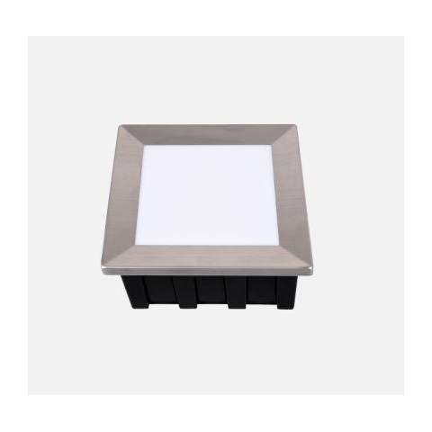 Talajba, falba építhető led fényforrással szerelt lámpatest IP65 védelemmel. A járófelületbe építhető lámpához 2 fajta takaró lemezt csomagolt a gyártó, 1 sima keretet és egy rácsos keretet, melyet csavar nélkül pattinthatunk fel a szerelőkeretre. Ház: PV