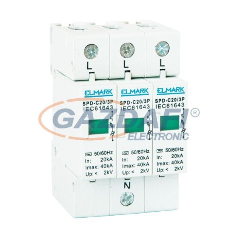 1 kép Elmark túlfeszültség levezető, SPD-B40, 3P, 40kA, 400V, 7 év garancia
