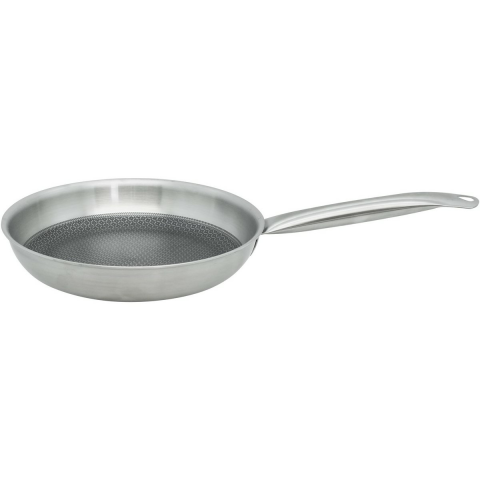 A német ELO márka 24 cm átmérőjű Relief Solution serpenyője modern és egészséges főzést hoz minden konyhába. Testét többrétegű anyagból, alumínium maggal és 18/10 rozsdamentes acélból készítik, ami kiváló hővezető képességet és egyenletes hőeloszlást biztosít a teljes felületen. Így minden használatkor tökéletes eredményeket érhet el, akár ropogós húst, zöldséget vagy halat készít. A matt belső felület jellegzetes méhsejtszerű dombornyomott