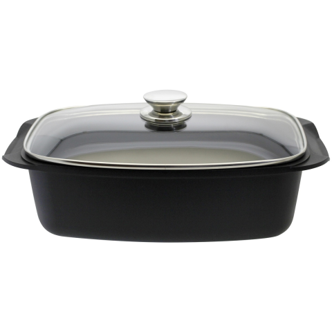 A német ELOmárka Quatrorondo sütőedénye ideális választás mindenkinek, aki minőségi és tartós edényeket keres sütéshez, főzéshez és pároláshoz. 40 x 22 cm-es méreteinek és 5,4 literes űrtartalmának köszönhetően elegendő helyet biztosít nagyobb adagok elkészítéséhez, minimális erőfeszítéssel. Öntött alumíniumból készül , amely kiváló hővezető képességgel rendelkezik és biztosítja a hő egyenletes eloszlását a teljes edény felületén, így