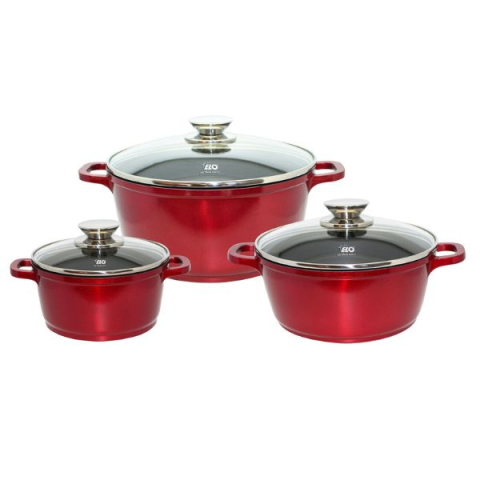 1 kép ELO RUBINO 3 fazékból álló készlet titánium rubinvörös, üveg fedő indukciós